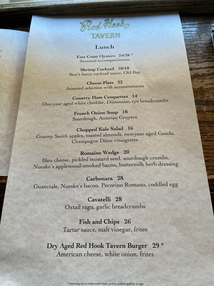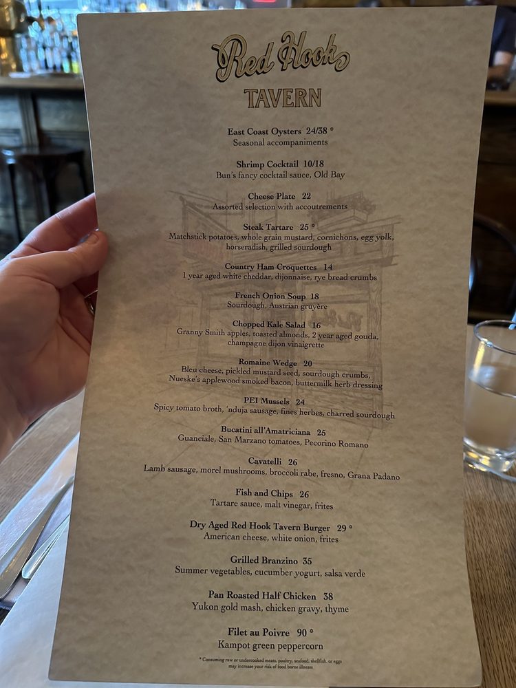 Red Hook Tavern, located in Brooklyn, offers a cozy and trendy dining experience with a menu that highlights American cuisine with a focus on burgers. Customer reviews rave about the flavorful ham croquettes, mouth-watering French onion soup, and the standout burger that is a must-try. The prime rib beef dish received mixed reviews but overall, the food quality is commendable. The quaint atmosphere and friendly staff add to the charm of the restaurant, although some customers noted minor service issues. Outdoor seating and a full bar make it a great spot for a casual meal or gathering with friends. Make sure to make a reservation in advance, as Red Hook Tavern is a popular choice on weekends. Overall, Red Hook Tavern offers a delightful dining experience with delicious options for both meat lovers and vegetarians alike.